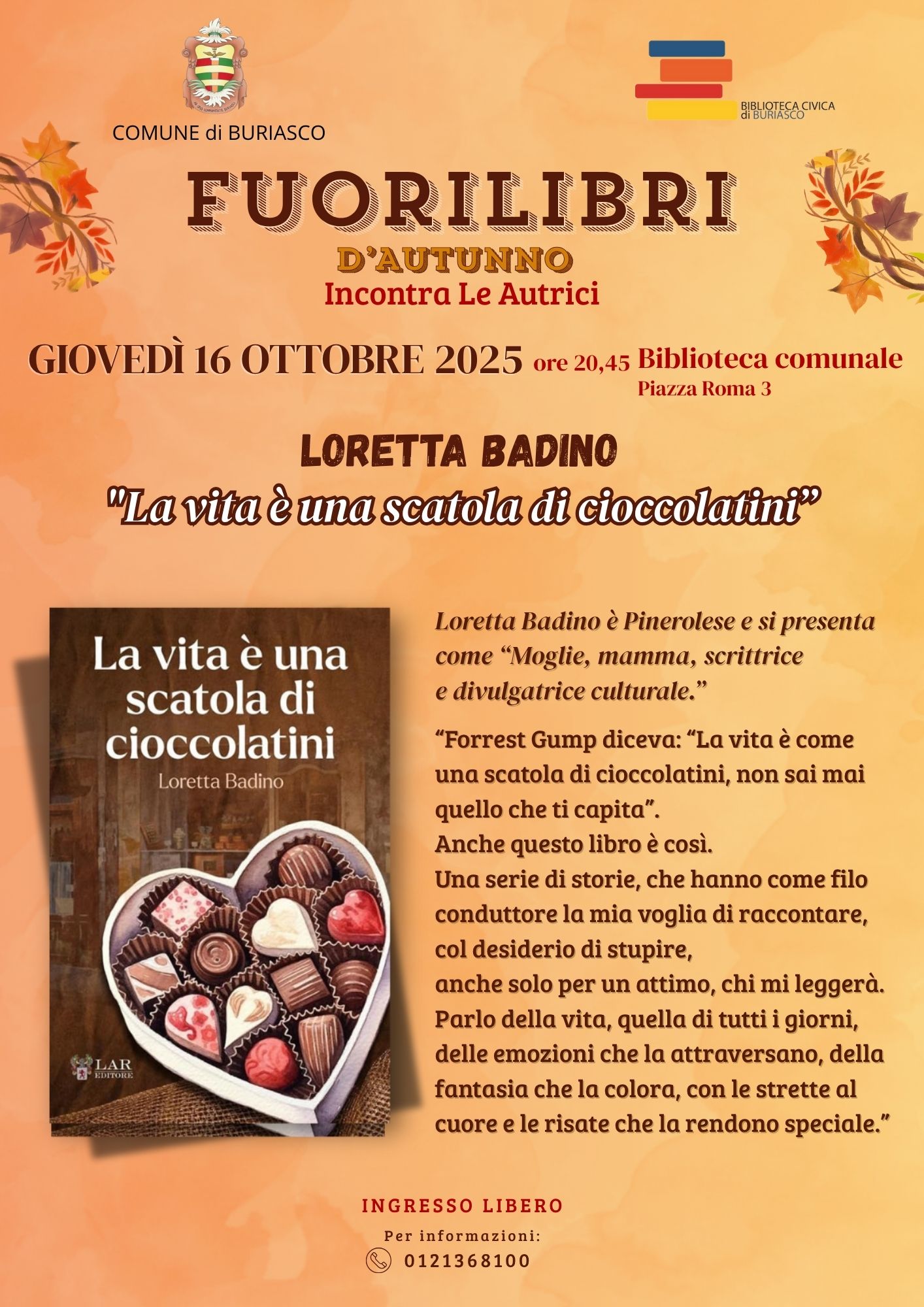 Giovedì 16 ottobre, alle ore 20:45 inizierà la rassegna Loretta Badino con il libro "La vita è una scatola di cioccolatini".