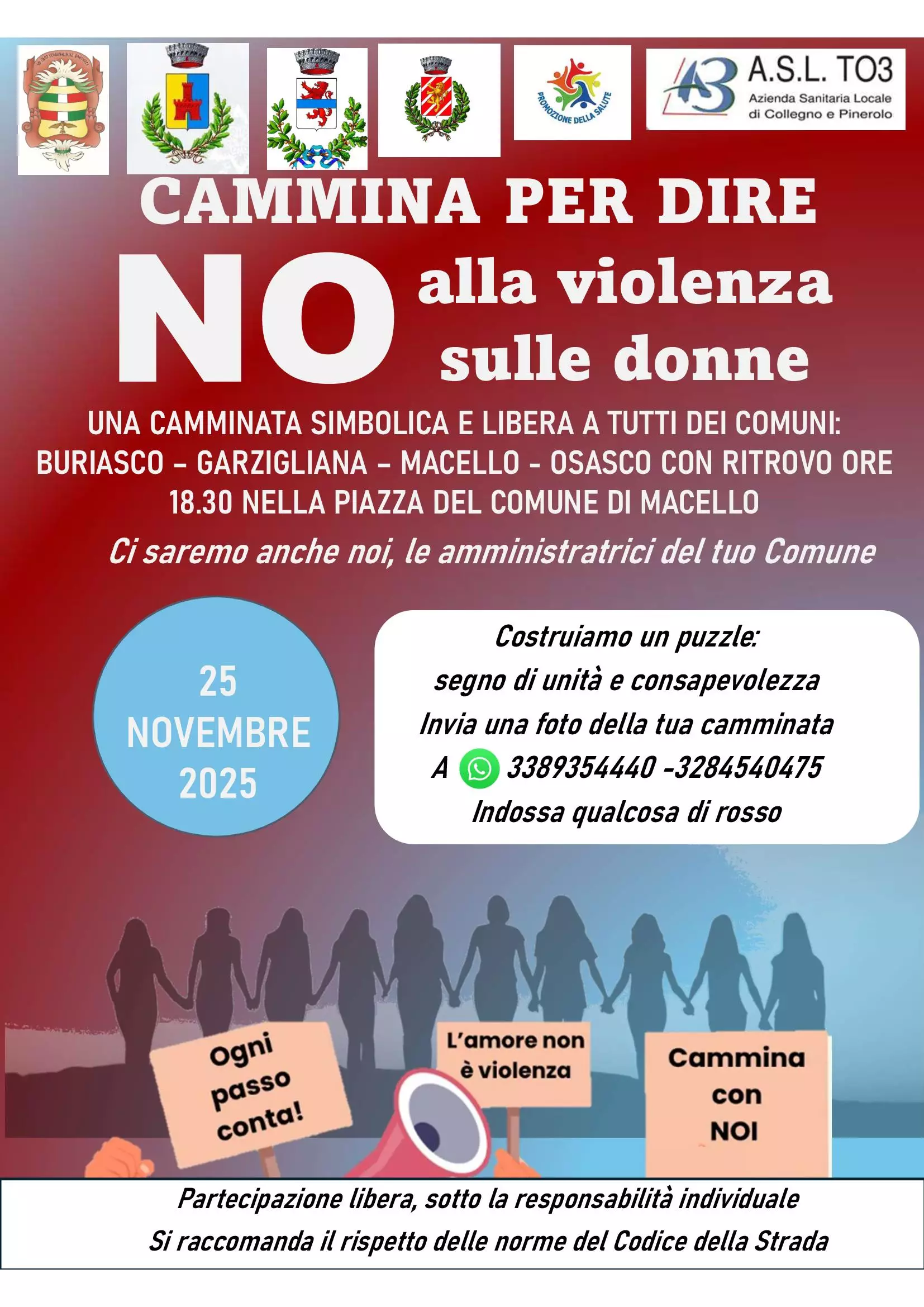Il 25 novembre si svolgerà una camminata simbolica e libera a tutti in occasione della giornata internazione per l'eliminazione della violenza sulle donne.